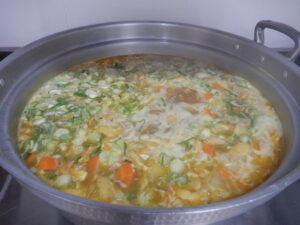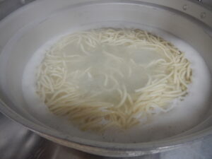 うどんの生麺をクラスごとに茹で、だしの香りがするとろみがついたカレーのスープと合わせます。