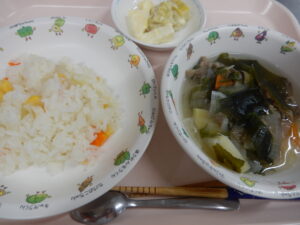 今日は「さつま芋とりんごのサラダ」でした。酸味があるりんごとほんのり甘い