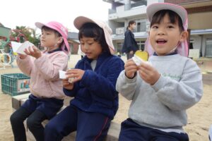 「さつまいもって甘くて美味しい!」「私にもちょうだい!」「もう一枚食べたいな~」