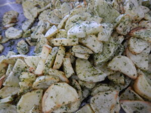 新メニューの「ベイクドじゃが」はオーブンでじゃが芋をカラリと焼き、青のりをまぶします。
