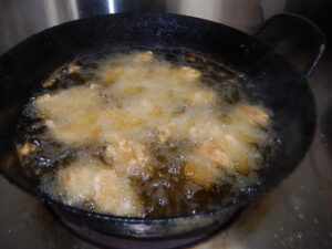なるべく揚げたてを食べて欲しいので、給食の時間が早いクラスから揚げていきます。